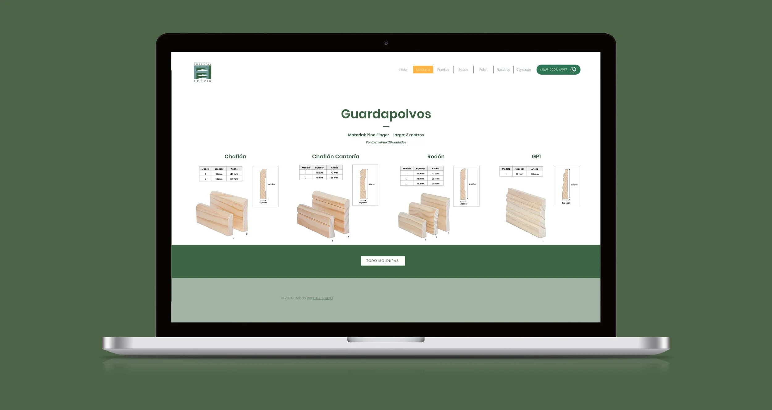 Sitio web corporativo desarrollado para Forestal Forvir, empresa chilena dedicada a la fabricación de molduras y batientes de pino radiata. El proyecto fue pensado para presentar de forma clara, directa y ordenada su oferta de productos, trayectoria y propuesta de valor, construyendo una presencia digital más sólida y funcional para una marca con fuerte vínculo con la industria y la vivienda.