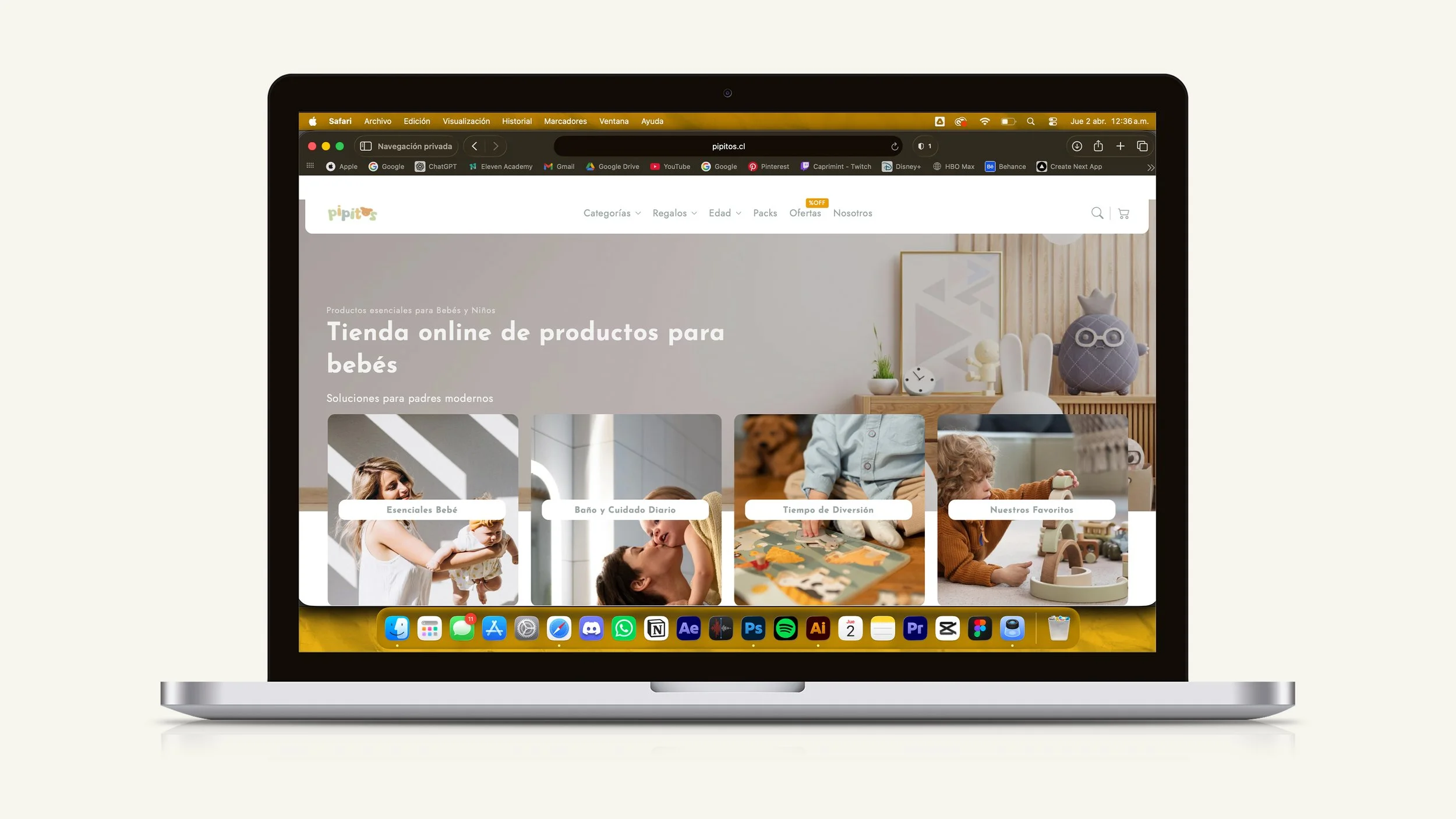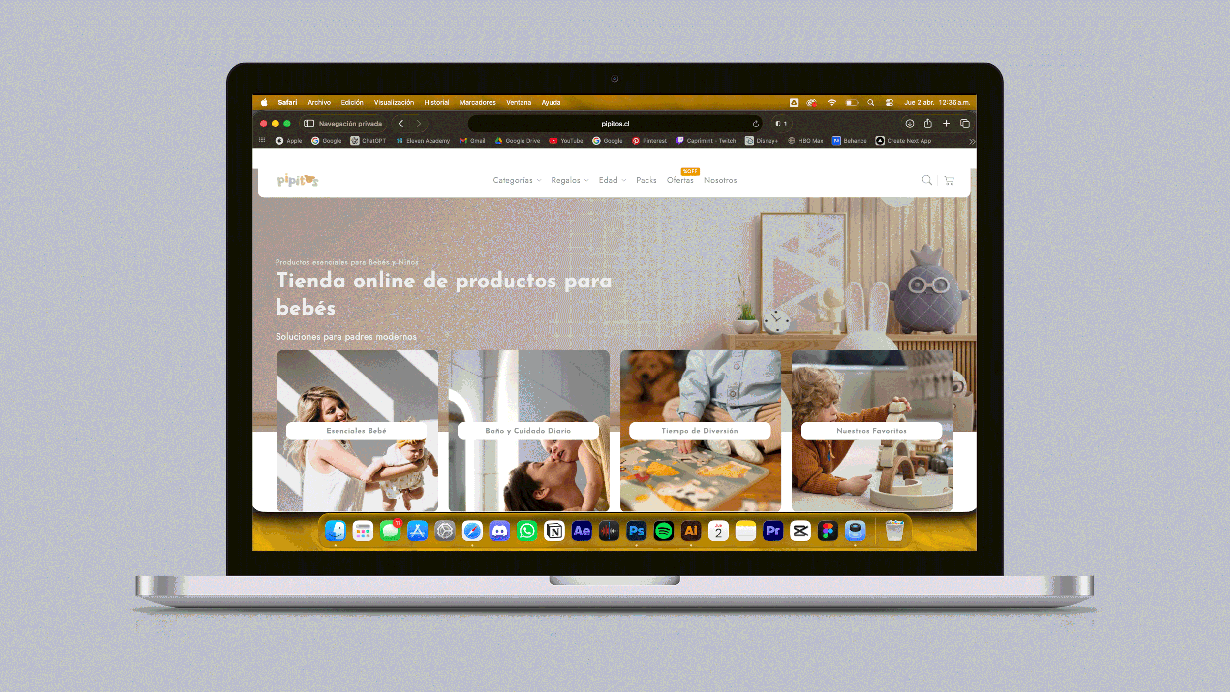 El resultado es un e-commerce ordenado, amigable y fácil de navegar, diseñado para fortalecer la experiencia de compra y presentar a Pipitos como una marca cercana, útil y confiable dentro del mundo infantil. Además, el sitio indica que fue diseñado por BAFE Studio y está montado sobre Shopify.