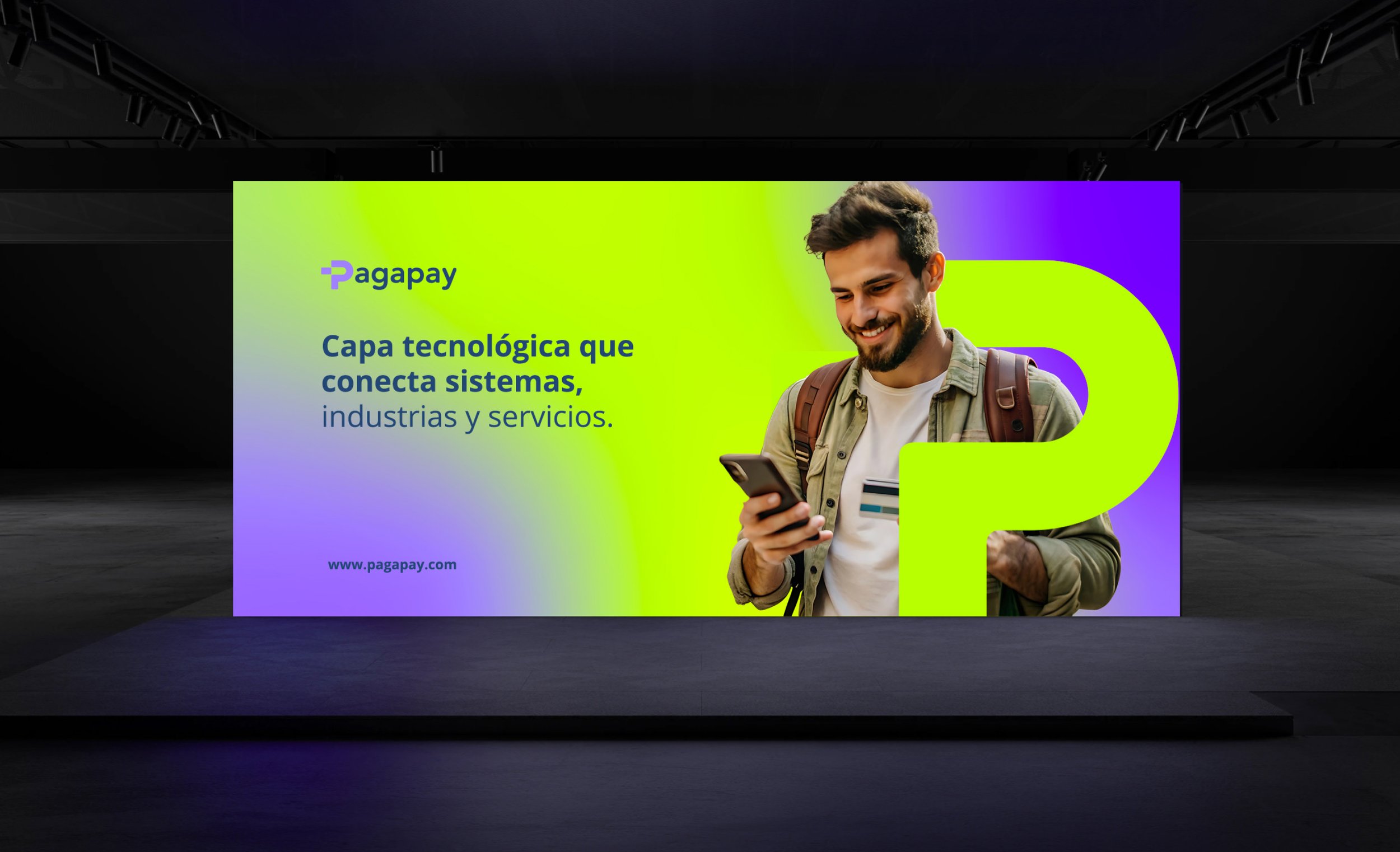 El concepto visual se inspira en la conexión de flujos financieros, representando cómo PagaPay une distintos medios de pago en una sola plataforma.